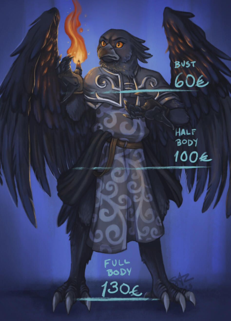 Full illustration 250e++5-20e for every complex detail like armor, tattoo, jewelry etcPicture involves simple/flat background.I do: